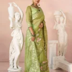 Be the first to review “Laxmipati Kesaar Bhog N-2951 NADIYA Green Organza Embroidery Saree” Cancel reply